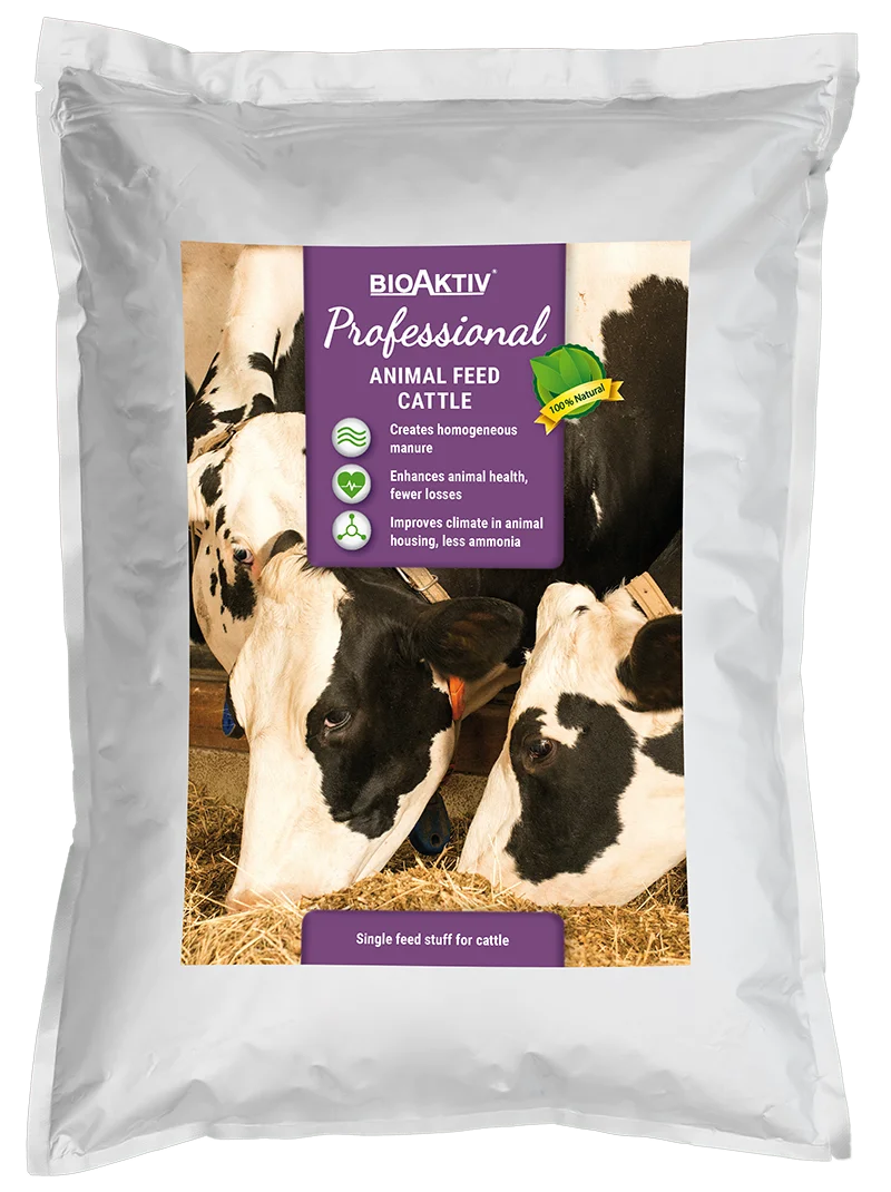 Whether for pigs, cattle, poultry, or other farm animals, the BioAktiv Professional line relies on natural feed additives that improve animal health, barn climate, and manure management. Benefits for farmers: