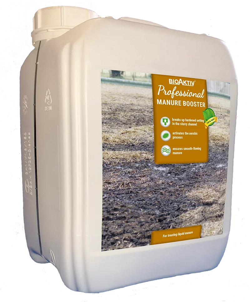 BioAktiv Professional Manure Booster reduces build up of ammonia, breaks up settings and reduces floating layers. Hardened settings in the barn slurry channel are dissolved and flow smoothly. The result is homogeneous manure that minimizes the need for mixing. The effect of aerobic bacteria in the slurry produces high quality manure that can be used as a valuable fertiliser.
